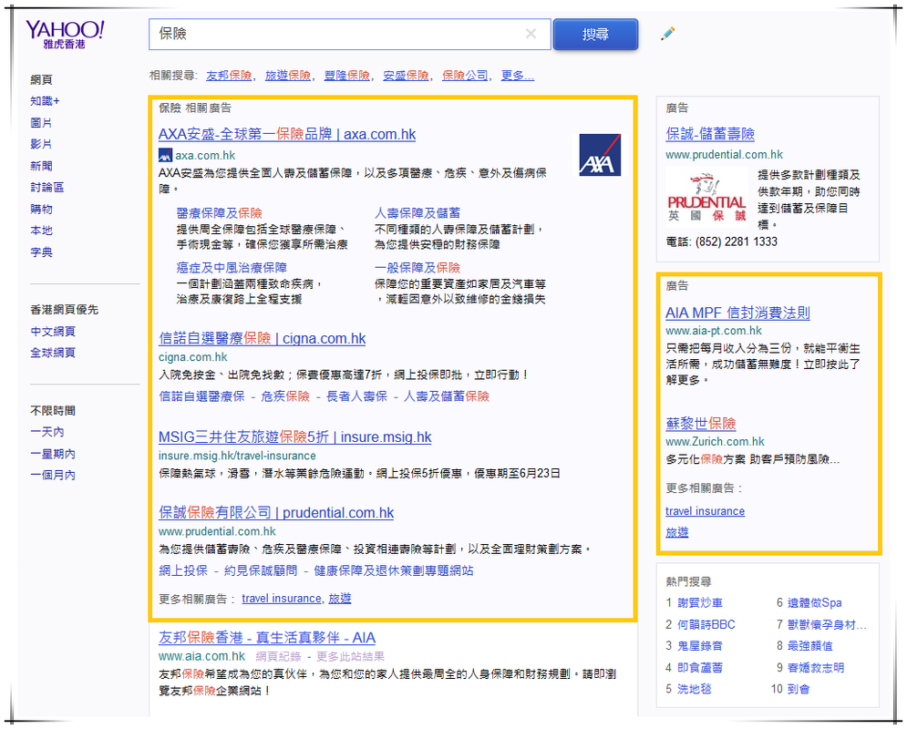 本地最熱門搜尋網站之一,超過9成互聯網使用者.雅虎關鍵字搜尋廣告,可令你網站曝光于搜尋結果廣告位置,更準確接觸目標客戶